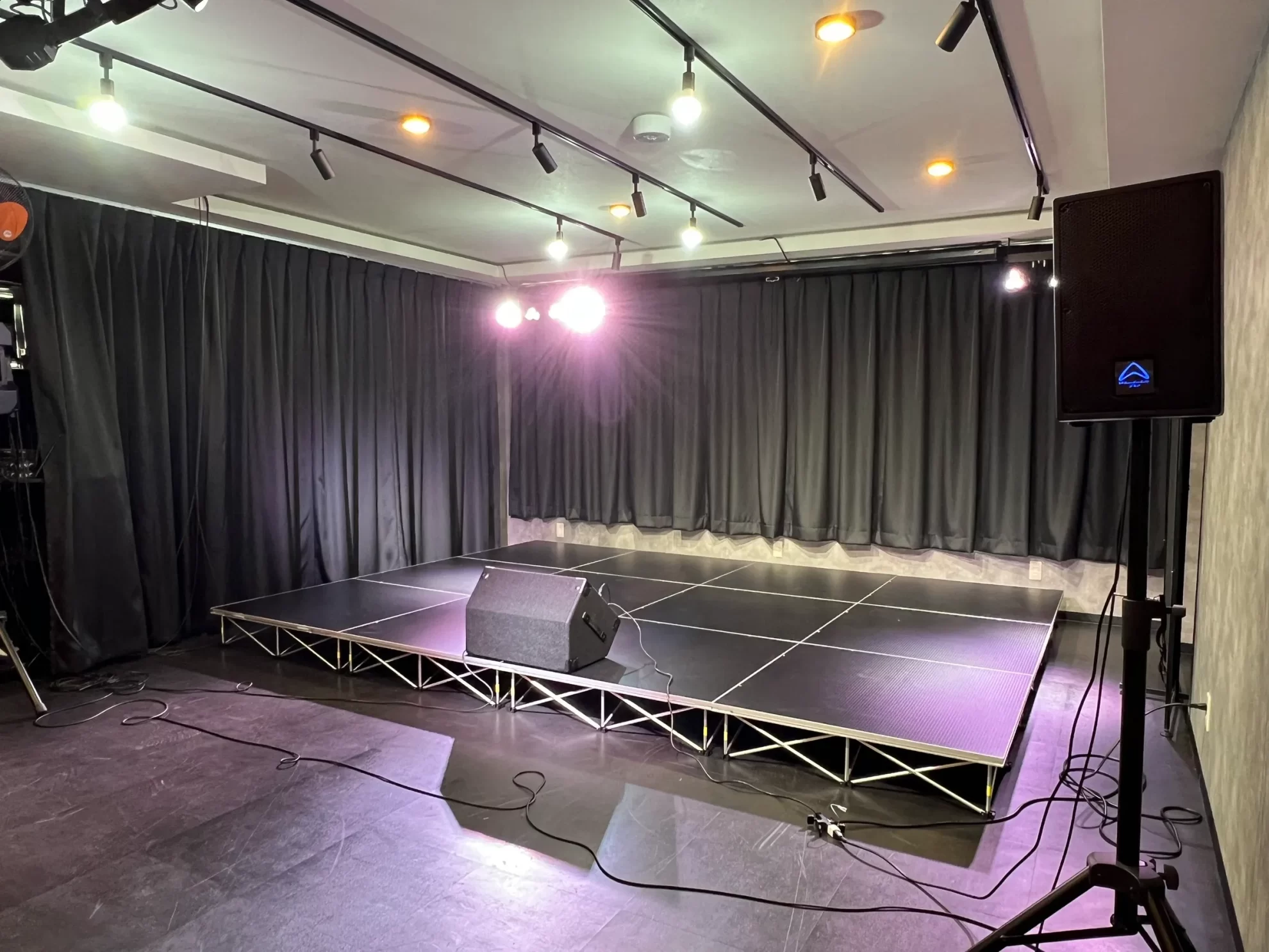 また、控室があり、便利なマイク・ステージ・照明も充実しています。