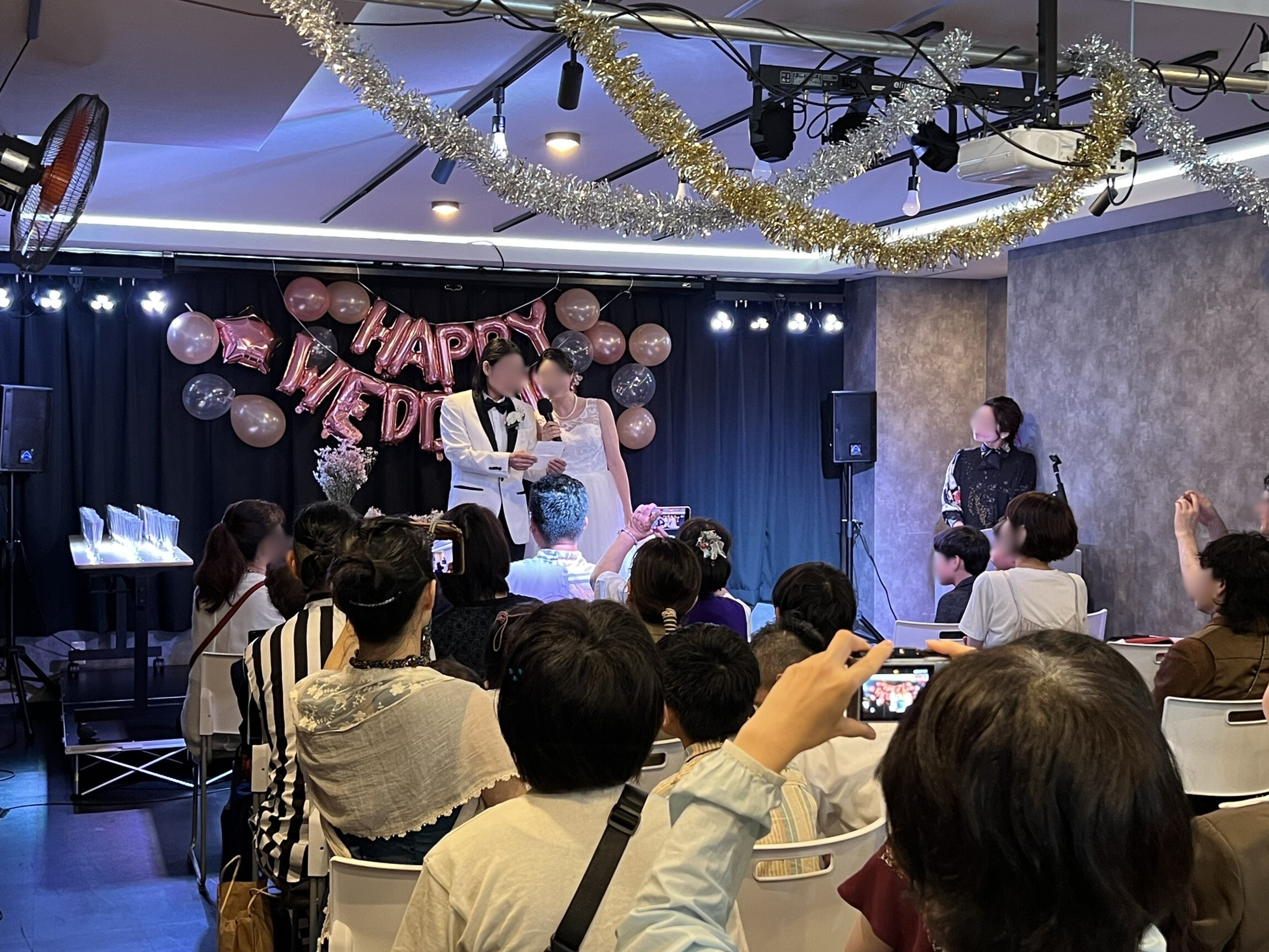 ワイヤレスマイクやPAスピーカーも常設なので、BGMの演出から司会進行まで、音響面で困ることはありません。