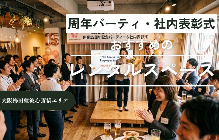 この記事では、大阪・梅田難波エリアで周年記念パーティーや社内表彰式を検討している中小企業の幹事さんに向けて、会場選びのポイントから費用感、当日の進行例までをまとめました。