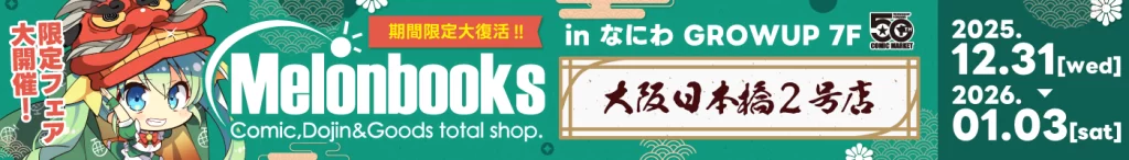 ▶ 詳細はこちら:https://www.melonbooks.info/special/festival/2025/winter/shop/osaka-second/